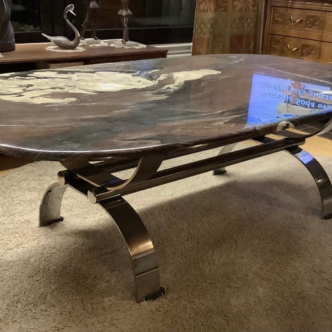 Aidon marmorin vuoksi pöytä on melko painava. Omat kantajat mukaan.