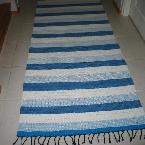 Upea Rugvistalta tilattu Rauma niminen ryijymatto. Valitettavasti joudun luopumaan, koska meille muutti valkoinen koiranpentu.