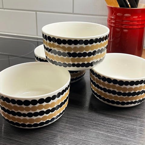 Myydään kuvamukainen Marimekko räsymatto tarjoilukulho, on uusi ja käyttämätön.
