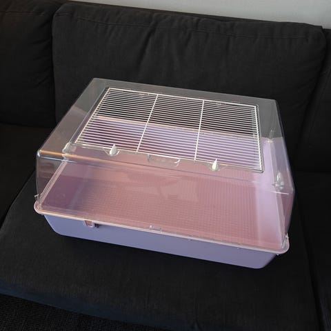 Siistissä kunnossa, käytön jälkiä toki löytyy. Perusteellinen pesu jää ostajalle, häkki siistitty.