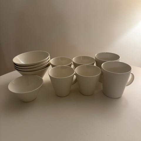 Myydään 2x lautanen 23cm, 2x kulho 0,25L ja 4x kulho 0,5L. Ehjiä, mutta käytön jälkiä on jonkin verran.