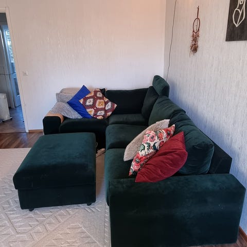 Itsellä ollut vierashuoneessa eikö näin ollen ole päässyt käyttöön. Sohvan kankaissa on pari tummempaa kohtaa edelliseltä käyttäjältä, mutta ne lähtisivät pesussa pois kun pesisi päälliset!