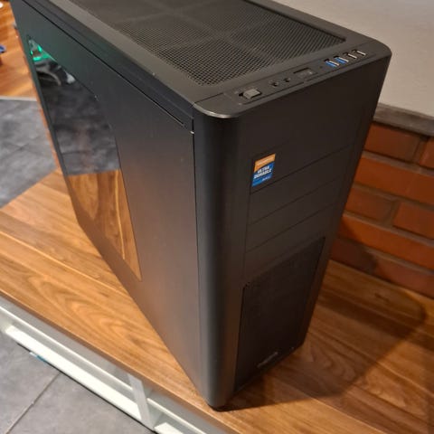 Sharkoon AM5 Silent -kotelo, punaisella kiiltävällä etupaneelilla ja hyvällä äänieristyksellä. Hyvä ja tukeva rakenne. Pysyy todella hiljaisena tehokkaallakin raudalla.