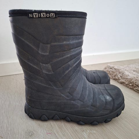 Nokian 25 koon vuorettomat saappaat suoraan käytöstä seuraavalle. Ehjät. Eläintalous. Mmm.
