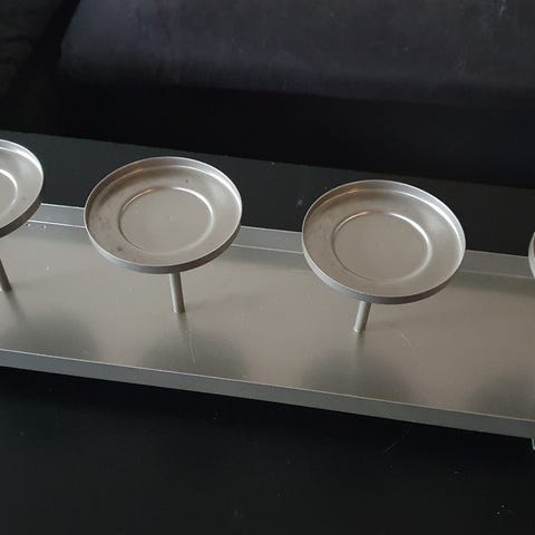 Käytetty kynttiläjalka isolle kynttilälle tms hyvä kuntoinen, halk noin 22 cn kork max 14 cm kimalteleva pinta