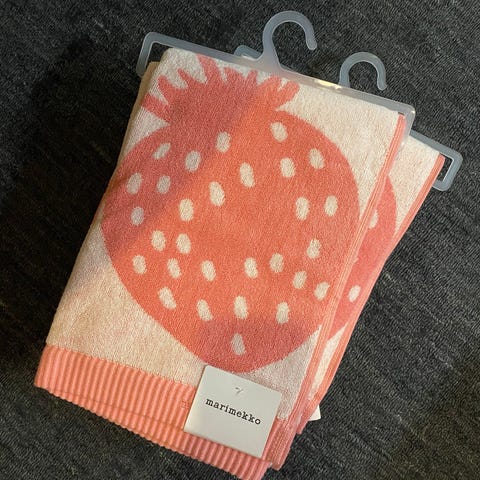Ostaisin Marimekon mansikkavuoret käsipyyhkeen lahjaksi!