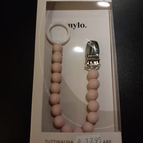 Myydään Mylon tuttinauha. Kunto lähes uutta vastaava, koska meillä ei tuttia sitten syötykään niin eipä tälle ollut tarvettakaan lopulta 😅