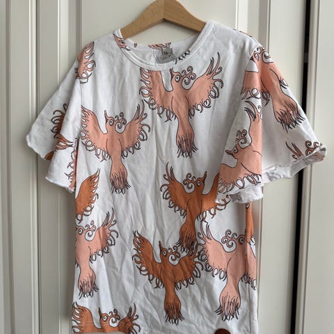 Blaa lasten T-paita, koko 134, keltainen väri. Unisex-malli, sopii sekä tytöille että pojille. Materiaali ei ole erikseen mainittu, kuvien perusteella kevyt ja mukava kangas. Paidassa on lyhyet hihat ja pyöreä kaula-aukko. Kuvioitu kuviolla, jossa on mustavalkoisia seeproja.