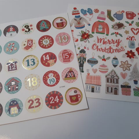 Hakusanat: joulutarroja joulutarrat jouluaskartelu tarra-arkki tarra-arkit tarra-arkkeja tarra tarrat tarroja joulukalenteri adventtikalenteri 1-24 joulu