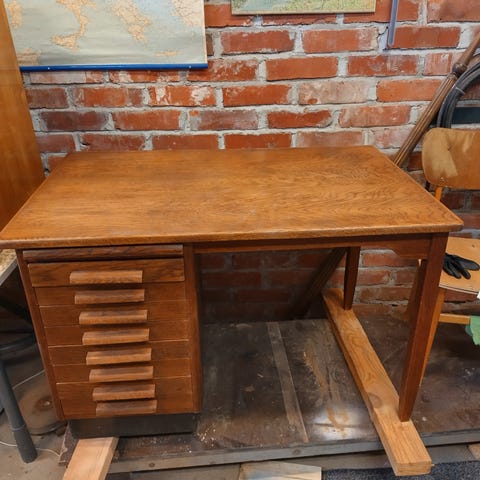 Tästä seuraavaan kotiin söpö vanha Billnäs kirjoituspöytä. Elämän jälkiä luonnollisesti jo tässä iässä näkyvissä.