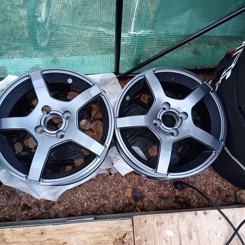Auto lähti ja renkaat jäi. Renkaat ihan uudet. Vaihdettu loppukesästä. Vanteet likaiset, mutta pitäisi olla hyvät. Keskireiän koko ei tiedossa mutta noin 70mm mitä mitalla mittailin. En varaile. Nopein hakija saa.