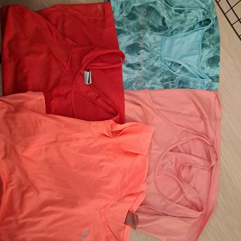 Käytössä olleet, mutta vielä siistikuntoiset treenipaidat moneen menoon. Parhaat M kokoiselle. Hinta 8 e yhteensä