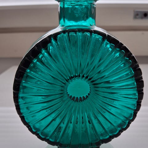 Helena Tynellin Riihimäen Lasille suunnittelema maankuulua aurinkopullosarjaa edustava maljakko.