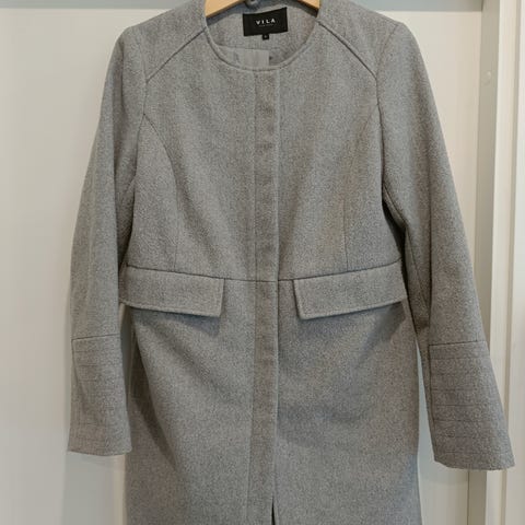 Harmaa musta hyväkuntoinen Vilan villasekoitetakki. Pesun jäljiltä.