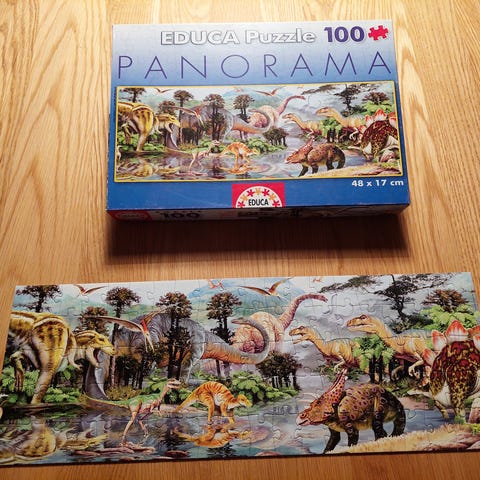 Ravensburgerin dinosaurusaiheinen palapeli, jossa on 100 palaa. Monta kertaa koottu, mutta tuo edelleen iloa pienille dinoharrastajille!