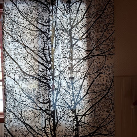 Näissä on ylätaitteessa rypytysnauha, verhot on silitetty. Yksitellen myytynä, sivuverho 1kpl/ 25€.