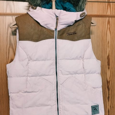 Myydään ruskea Kjus merkkinen, hupullinen toppaliivi / untuvaliivi. Huppu irroitettava. Kunto moitteeton. Koko 42. Malli kapeahko.