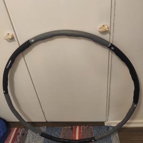 Myydään painollinen hulavanne. Tarkoituksena on vahvistaa keskivartaloa. Vanteessa kolhuja ja pehmusteeseen tulleita viiltoja. Lisäksi pehmusteet eivät mielestäni kohtaa joka kohdassa vannetta. Kts kuvat.