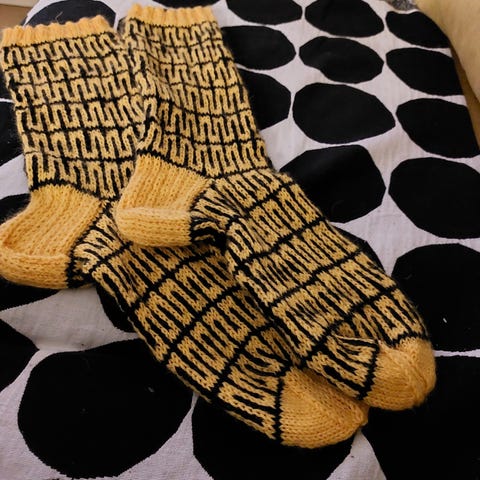 Nallelangasta neulotut sukat pituus 23 varsi 18 koko 37 38