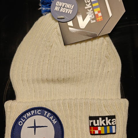 Suomen olympiajoukkueen lipallinen pipo. Peking 2022.