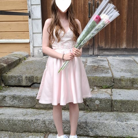 Vaaleanpunainen juhlamekko.