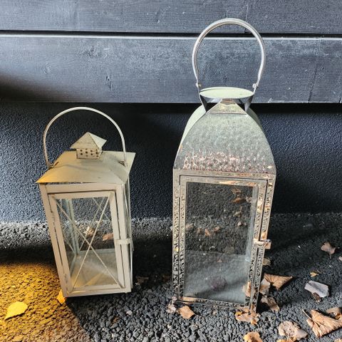 Hopeat lyhdyt 2kpl toinen suuri ja toinen keskikokoinen. Lasit ehjät.