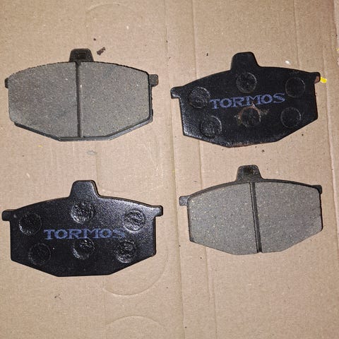 Etujarrupalat Renault 5,12 ja 18.Huom!Girling-jarrut.Yhdessä paloista (kuten kuvassa näkyy) on aikojen mukana tarttunut pakkauspaperia kiinni,ei pitäisi olla ongelma.