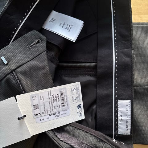 Housut ovat uudet / käyttämättömät. Laput poistettu, vyötärönauhan alapuolella jäljellä lappujen kiinnitysommel. Hinta kaupassa n. 250€.