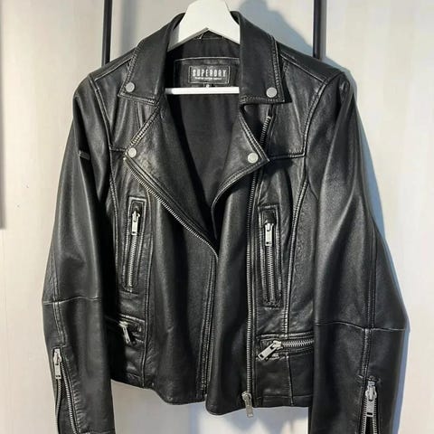 Ostettiin väärä koko joten ei päässyt käyttöön. Uudenveroinen aitonahkainen bikertyylinen takki. 6 taskua: sisäpuolella 2 joista yksi vetoketjulla, oikealla puolella yksi vetoketjullinen tasku ja vasemmalla kolme taskua joista kaksi vetoketjullista ja yksi neppariläpällä. Aitoa nahkaa! Vyöllä. Tästä mainio takki malttihinnalla. Hp. 80e. Käteinen ja nouto. Eläimeton ja savuton talous.