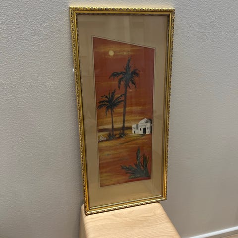 Vanha taulu. L 52cm K 40cm. Puukehys. Ehjä lasi.