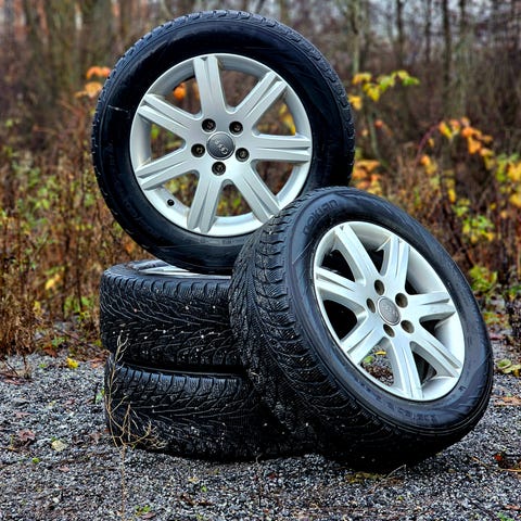 Volkswagen, Audi, Seat, Skoda kitkat vanteilla. Paistettu 29/19. Pintaa noin 7mm. Säilötty lämpimässä tallissa. Vanteet suorat eikä täristä. ET46.