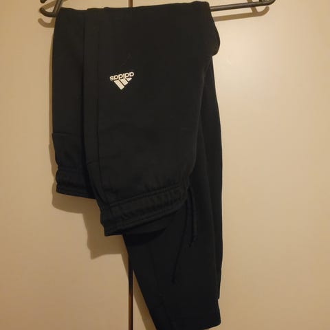 Adidas Muut naisten housut, koko M, väri musta. Housuissa on vetoketjulliset taskut ja kiristysnyöri vyötäröllä. Siistit, ehjät, savuton talous