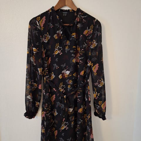 Mukava arkimekko, viskoosi, pääväri vihreä, mutta hieman kuvioitu. Helmassa rimpsu. Koko 38.