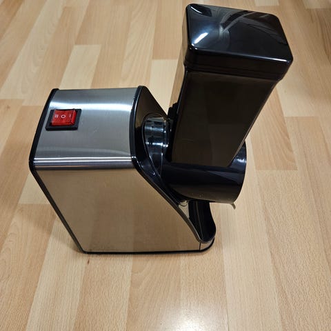Tuote on sähköinen vihannesleikkuri ja raastin.