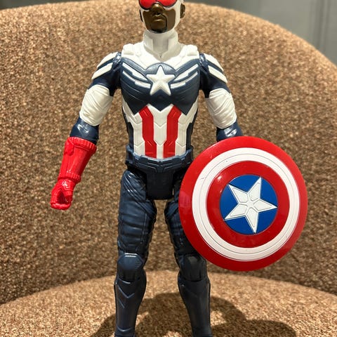 Myydään siistikuntoinen Kapteeni Amerikka- toimintahahmofiguuri. Korkeus n. 24 cm. Kilven paikkaa voi vaihdella. Pieniä käytön jälkiä.