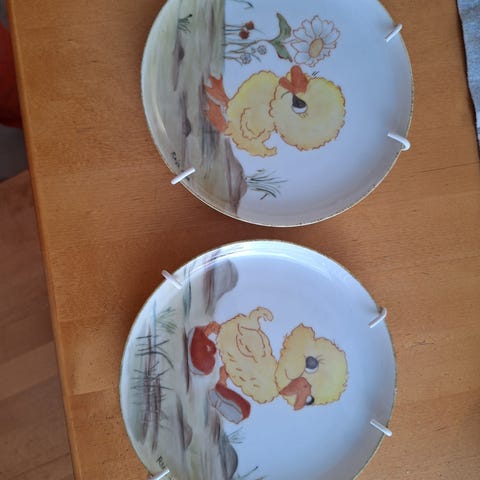 Maalattu seinälautanen. Lautasen halkaisija 2