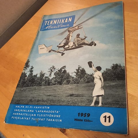 Tekniikan Maailma-lehti vuodelta 1958. Hyväkuntoinen, Ei hajuja, ei repeymiä, sivut tallella. Vaikka lahjaksi.