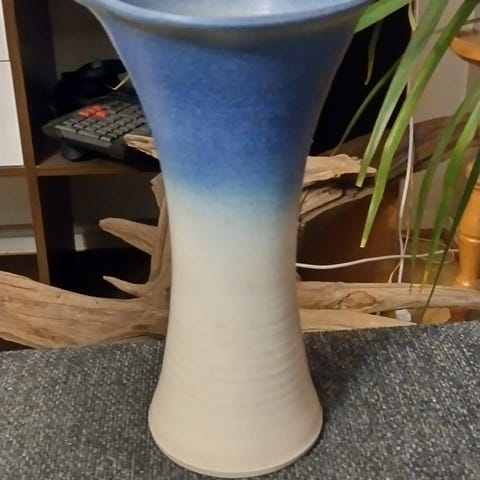 Ruusukuvioinen kaunis keraaminen maljakko. Sisällä pieniä puutteita. Korkeus 20 cm, leveys ylhäältä 12 cm.