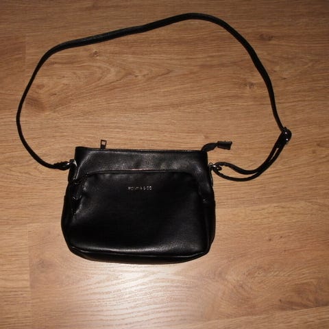 Koko 21 x 20 x 4 cm (huom. litteä). Kunto kuin uusi myös sisältä, jossa vetoketjullinen sivutasku. Nouto ja käteisellä.