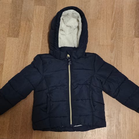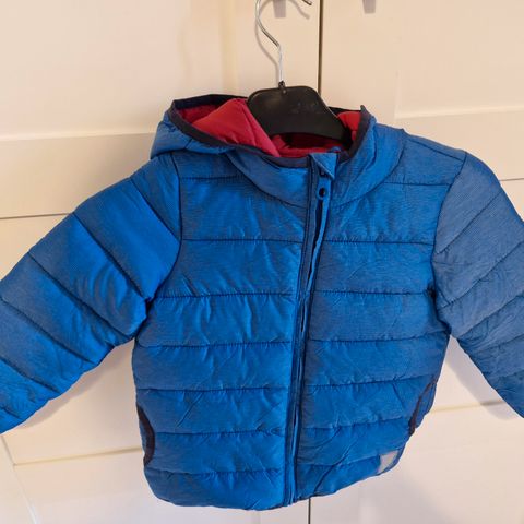 Lasten sininen toppatakki, takissa ei kokomerkintää, mutta ikäsuositus 5-6 vuotta. Takissa on toimiva vetoketju, kiinteä huppu ja kaksi taskua. Sisällä ihanan pehmeä fleecevuori. Toisessa hihassa on muutama todella pieni "pykimä" (viimeinen kuva), mutta takki on yleisilmeeltään oikein siisti. Helma, kaulus ja hihansuut ehjät ja siistit. Pesuohje 40 astetta.