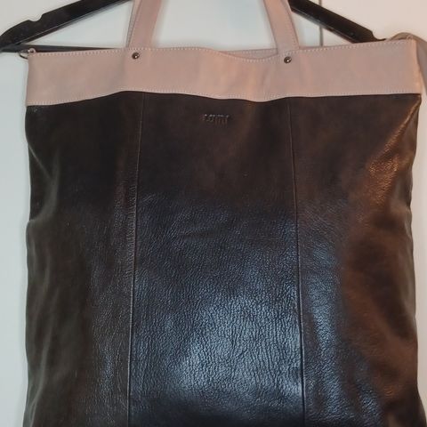 Kaunis Tote-nahkateppu/laukku vaikka työkoneelle ja muutamalla muulle tärkeälle päivittäin mukana kulkevalle tavaralle. Olkaimet irrotettavat, voit kiinniytää myös olkalaukuksi/kehon yli. Kätetty muutaman kerran, kunto erinomainen. Väri musta, sisällä sininen puuvillavuori ja pehmustettu tasku läppärille 13”. Säilytetty omassa puuvillapussissa.