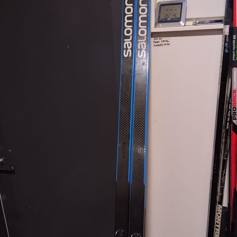 Salomon eskin RC10 karvapohjasukset. Pituus 196cm, jäykkyys medium. Valmistajan ilmoittama painoluokka 55-65kg. Suksi toimii parhaiten painoluokan alapäässä.