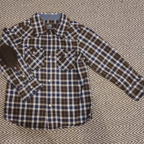 Ruudullinen pusero. Ruutupaita. Napit. Tasku. Koko 104/110. Ehjä. Tahraton. Moitteeton kunto.