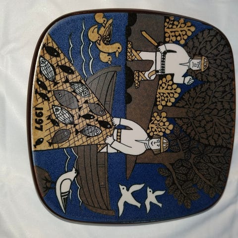 Lautanen on ehyt ja hyvin pidetty. Mielellään nouto, voin lähettää vaan en voi ottaa vastuuta, että lautanen tulee ehjänä perille vaikka pakkaan tuotteen kyllä niin hyvin kun mahdollista. Myynnissä koko sarjan lautaset 1976-1999. Katso myös muut myynnissä olevat tuotteeni.