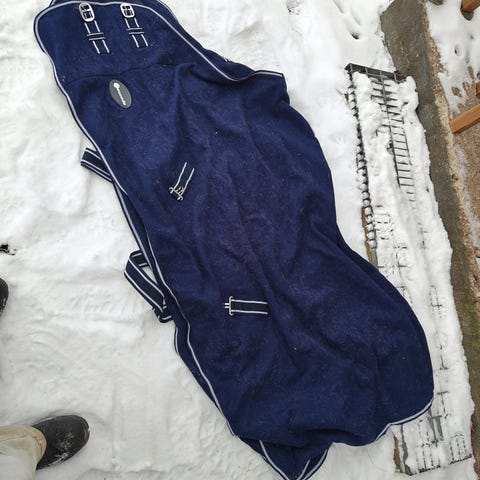 CRW fleece 134/140, sininen, takana hevosen kuva