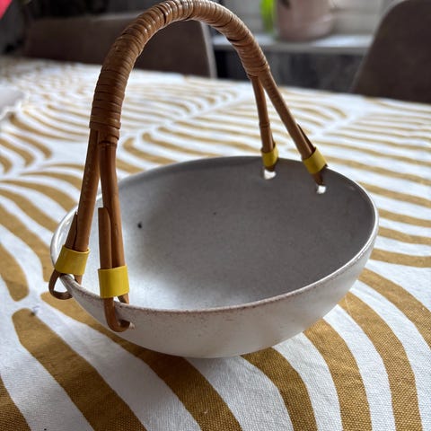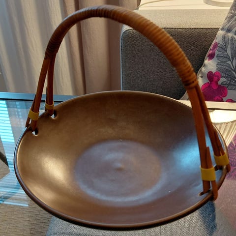Vintage Kupittaan savi pieni tee kannu rottinkikahvalla