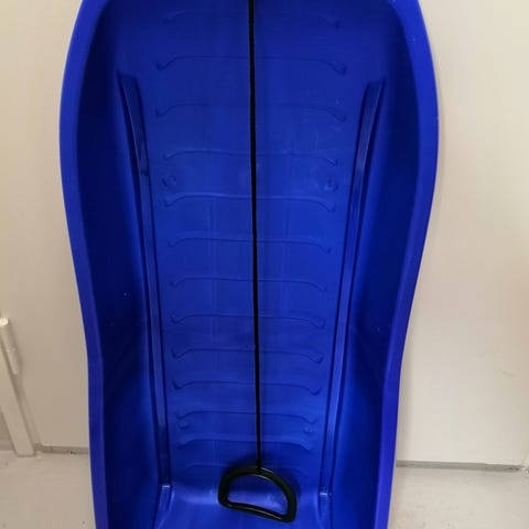 Hyvässä kunnossa oleva pulkka. Vähän on kulumaa pohjassa. Sopii 7 vuotiaasta ylöspäin. Pulkan pituus 85cm Leveys 41, 1cm.