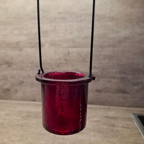 Vuosituhannen vaihteessa tuotannossa ollut Muurlan tummansininen roikkuva tuikkulyhty paksua lasia.