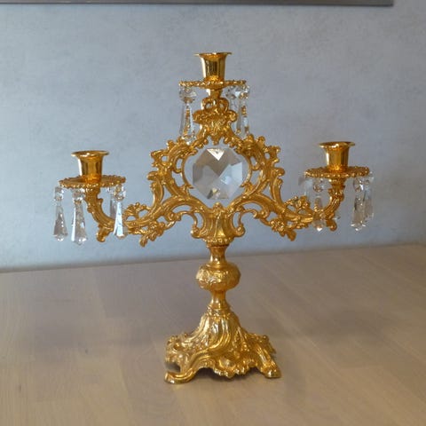 Kahden kynttilän kynttelikkö kristallikoristein