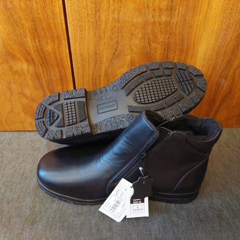 Miesten talvikengät, koko 47, musta väri, valmistettu nahasta. Kengissä on paksu pohja, joka tarjoaa pitoisuutta talviolosuhteissa. Sisävuori on pehmeä ja lämmittävä, sopii kylmiin sääolosuhteisiin. 2 vetoketjua.